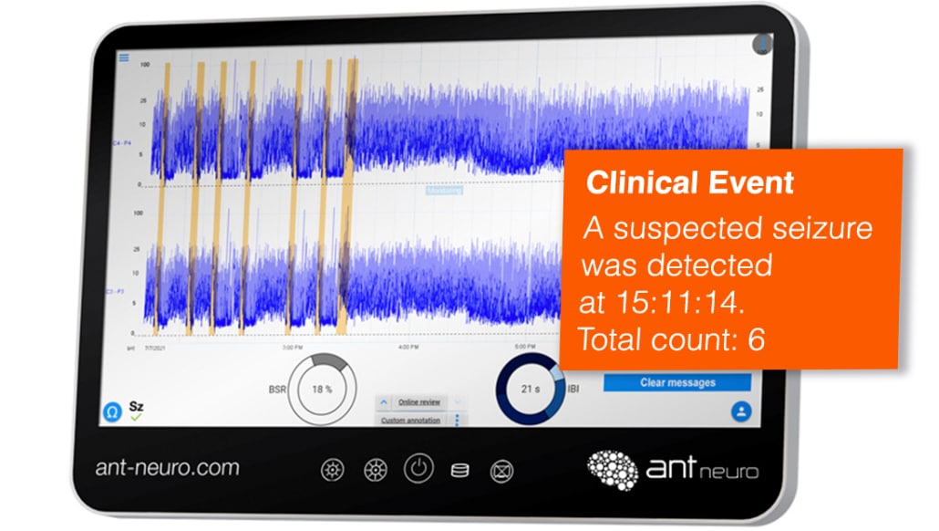 - Automatic Annotation: Automatic annotation of seizure activity* on up to 2 user-defined aEEG channels