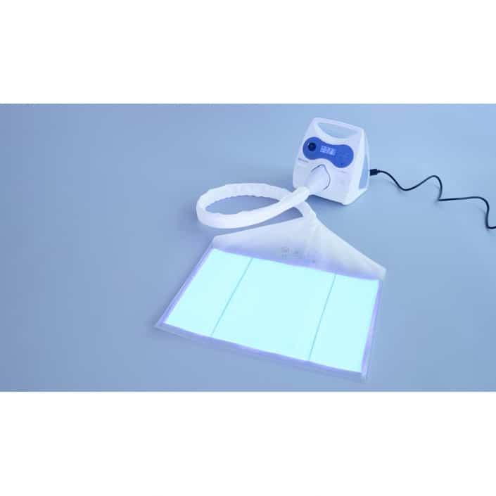 For maximum effectiveness, Bilicocoon® offers an intensive and homogeneous irradiance (35 microW/cm²/nm), and a large coverage of body surface area (1200 cm²). It emits light in the absorption spectrum of bilirubin: from 430 to 490 nm , facilitating the reduction of bilirubin concentration in the blood.