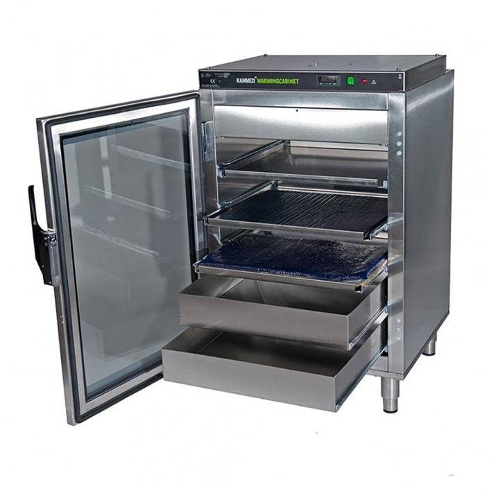 The Kanmed Fluid Warming Cabinet is designed to assist in the reducation of patient hypothermia and to increase the patients comfort. The Cabinet is mainly used in the Operating Theatres for warming intravenous fluids, dialysis & irrigation fluids, and gel positioning equipment.