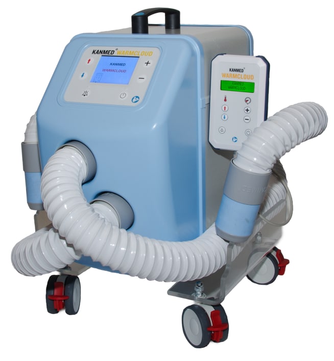 Kanmed WarmCloud is a unique system that ensures patients stay warm during surgery and reduces the risk of pressure sores. The Kanmed WarmCloud system consists of a single-use Warm Air Mattress, a Main Unit and a Hand Controller for operating the system. The idea is simple yet very effective: the Warm Air Mattress is placed under the patient and creates a soft, comfortable and temperature-controlled cushion.