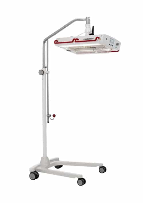 Ceramotherm® 300 radiant warmers are the result of more than 40 years of continuous development in the medical use of infrared radiation. Convenient handling and function, comfortable operation as well as a safe use are the priorities of this radiant warmer. The Ceramotherm® 300 mobile unit is recommendable when the warmer will be used in different rooms or if due to constructional reasons a fixed mounting is not possible.